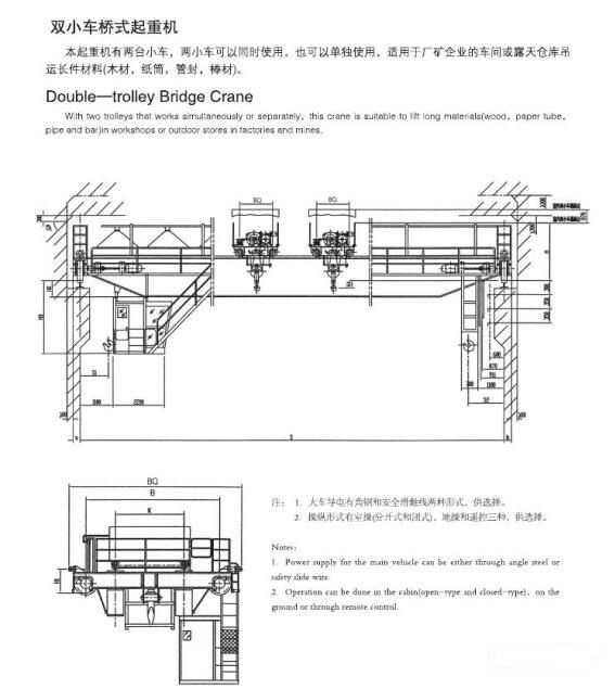 本起重機是采用國際國內(nèi)最新的標準系列設計、制造的產(chǎn)品。整機結構新穎、造型美觀、工藝性好、操作靈活平穩(wěn)、安全可靠。主要特點:橋架采用箱型主梁,CO2氣體保護焊接。小車導電采用異型鋼軌電纜導電新裝置。零部件標準化、系列化、通用化。司機室視野開闊,內(nèi)設控制機構聯(lián)動臺,操作靈活,工作舒適,還可根據(jù)要求設風扇、空調(diào)器、超負荷指示器等。司機室與跨尖設有斜扶梯,方便操縱及檢修。可根據(jù)用戶的要求設計各種非標準產(chǎn)品。