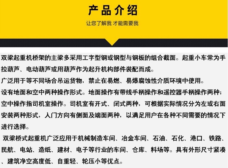 衛(wèi)華起重機(jī)山東辦事處主營(yíng)龍門吊銷售,架橋機(jī)租賃,行車行吊,集裝箱龍門吊,雙梁起重機(jī),門式起重機(jī),橋式起重機(jī),提梁機(jī),運(yùn)梁車等多種起重設(shè)備.20年起重設(shè)備行業(yè)經(jīng)驗(yàn),為滿足客戶的不同需求.24小時(shí)熱線:13253557957